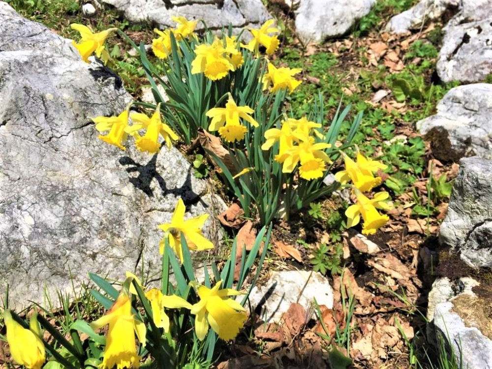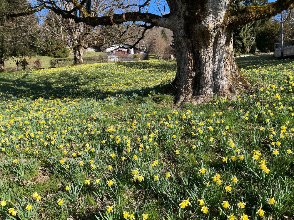 Wanderung durch ein Meer von wildblühenden Osterglocken