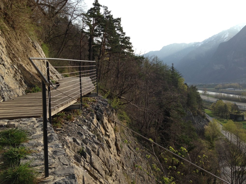 Von der Bushaltestelle Römerweg geht es zur Via Alpina, die uns hinauf zur historischen, renovierten Schollbergstrasse bringt. Auf dem alten Trassee und durch den Karin-Keller-Sutter-Tunnel erreichen wir Chlefibünt. Nun folgt ein steiler Aufstieg bis nach Lavadarsch. Wir wandern auf dem Rheintaler Höhenweg bis nach Bergsteg. Auf dem Brüggliweg geht es weiter bis zum Lanaberg am Fusse des Gonzen. Der Rückweg führt uns über den Maienberg nach Matug und weiter hinunter nach Vild und dem Eingang zum Gonzenbergwerk. Auf der Strasse erreichen wir kurz darauf den Bahnhof Sargans.