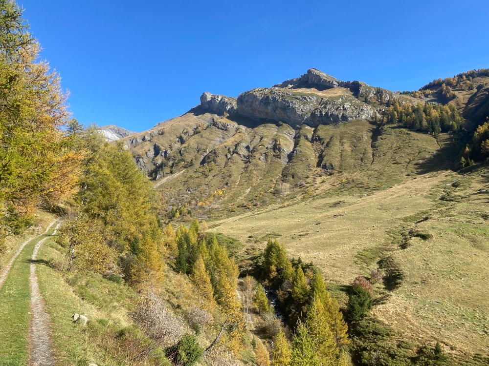 Von den Maiensässen von Arbaz wandern wir durch das Sionne-Tal nach Incron, wo das Gold der Lärchen unter dem azurblauen Himmel leuchtet. Nachdem wir eine spektakuläre Aussicht auf die Felsen von Prabé genossen haben, steigen wir wieder ins Tal hinab und dann leicht ansteigend zur charmanten Alpe du Got in der Nähe von Anzère hinauf. Wir beenden unsere Wanderung mit einem Abstecher zur Sternwarte von Arbaz, wo wir die Gelegenheit haben, die Sonne durch ein Teleskop zu bewundern und einen Aperitif zu geniessen, der uns offeriert wird.Von den Maiensässen von Arbaz wandern wir durch das Sionne-Tal nach Incron, wo das Gold der Lärchen unter dem azurblauen Himmel leuchtet. Nachdem wir eine spektakuläre Aussicht auf die Felsen von Prabé genossen haben, steigen wir wieder ins Tal hinab und dann leicht ansteigend zur charmanten Alpe du Got in der Nähe von Anzère hinauf. Wir beenden unsere Wanderung mit einem Abstecher zur Sternwarte von Arbaz, wo wir die Gelegenheit haben, die Sonne durch ein Teleskop zu bewundern und einen Aperitif zu geniessen, der uns offeriert wird.