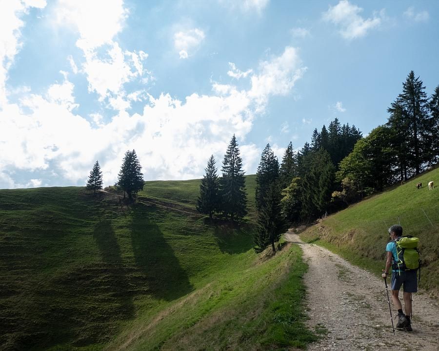 Leichte Wanderschuhe und dem Wetter entsprechende Bekleidung