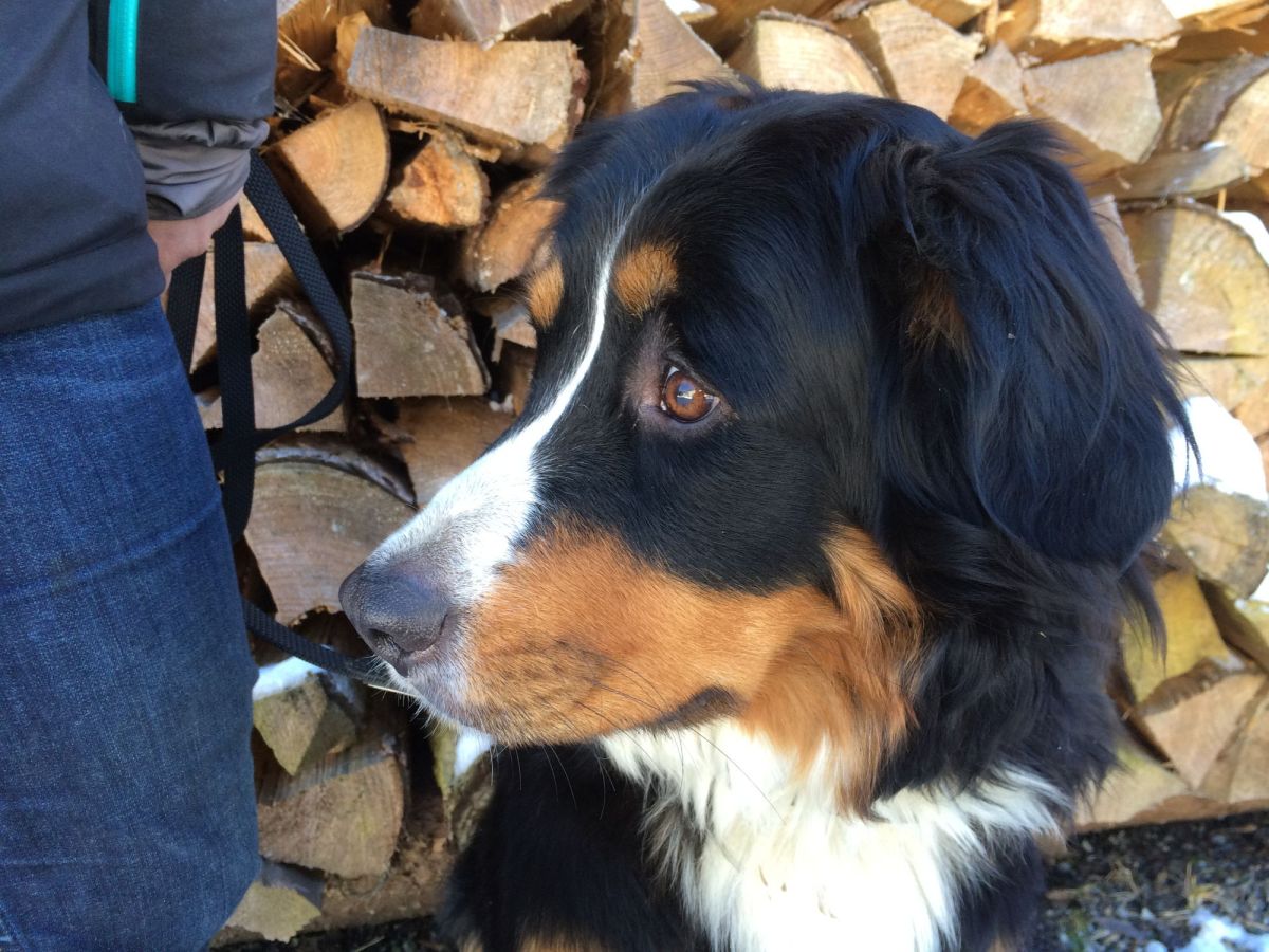 Die Wanderung führt an einem Bauernhof vorbei. Hinter dem Haus ertönt Gebell, sofort erscheint ein Appenzeller Sennenhundmischling und rennt auf mich zu. Am Gartenzaun bremst er abrupt ab. Erleichtert atme ich auf.