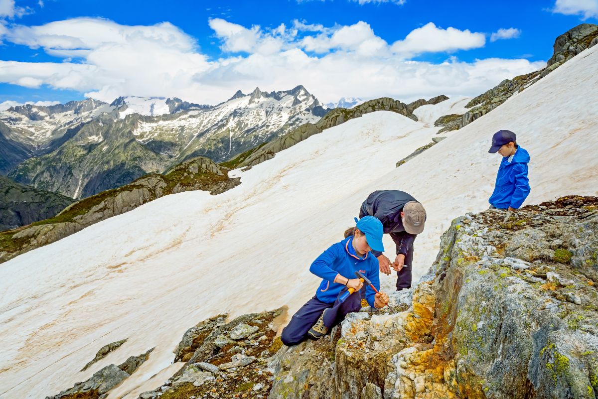 Le temps passe vite, les enfants deviennent plus habiles à trouver des pierres scintillantes. Fascinés, ils contemplent les étonnantes formes transparentes, créées il y a quelque 15 millions d’années à partir d’une solution minéralisée dans des conditions de pression et de température très élevées, profondément sous la terre. Ce n’est que lors de la formation des Alpes et du fait de l’érosion et des intempéries qu’elles sont remontées à la surface.