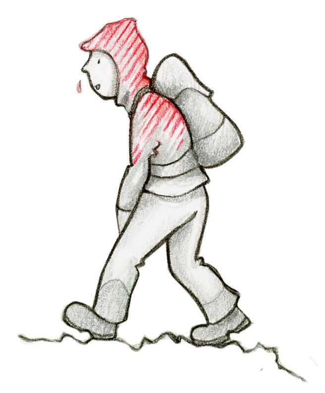 Outre l’humidité, l’isolation peut aussi être réduite pas d’autres éléments: un sac à dos reposant contre le corps écrase ainsi les coussins d’air. Si les vêtements sont trop grands ou trop petits et ne sont pas bien ajustés, cela entraîne aussi une perte de chaleur corporelle.