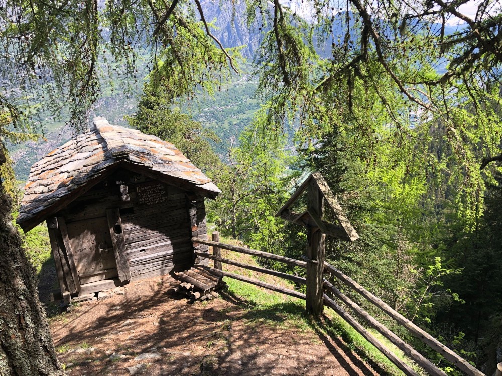 Cette petite maison rappelle les anciens barrages d’eau du Gebidum, utilisés autrefois pour irriguer les prairies avant la construction du tunnel. Le gardien de l’eau y vivait durant la saison d’irrigation et surveillait le débit grâce à une roue à eau.