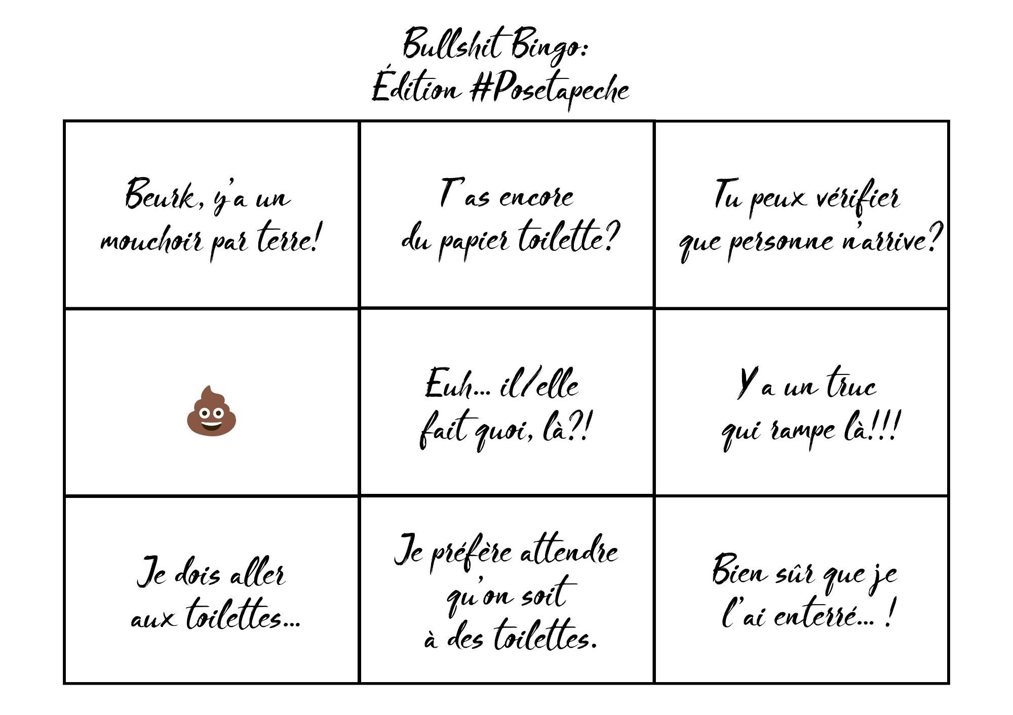 - un bingo «bullshit» spécial #posetapeche pour vos followers
